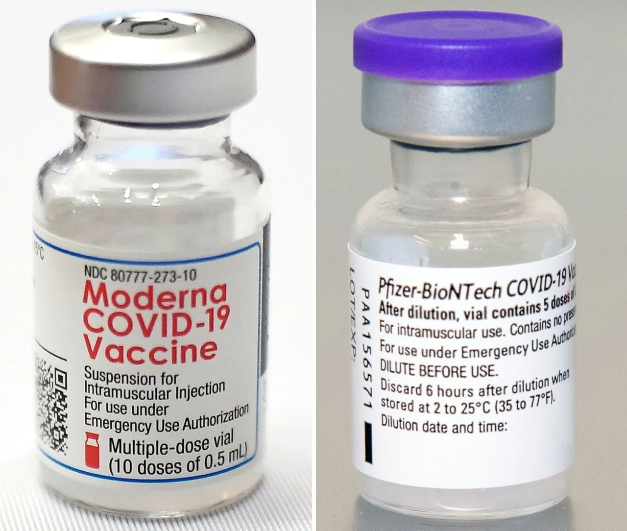 Beide Impfstoffe müssen nach Erstnutzung innerhalb von sechs Stunden verbraucht werden. Eine Durchstechflasche reicht bei Biontech/Pfizer für fünf bis maximal sechs Dosen, bei Moderna für zehn.