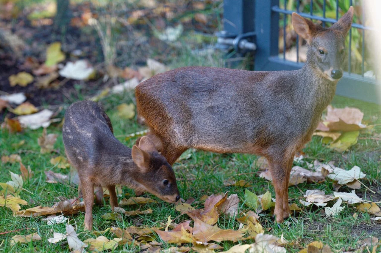 Ausgewachsen sind Südliche Pudus nur etwa halb so groß wie Rehe. Am Donnerstag erkundete «Dulce» bereits die Außenanlage des Südamerika-Bereiches des Zoos. Trotz seiner wachsenden Neugierde ist der kleine Hirsch noch recht scheu - und hielt sich bei der Erkundungstour an seine Mutter.