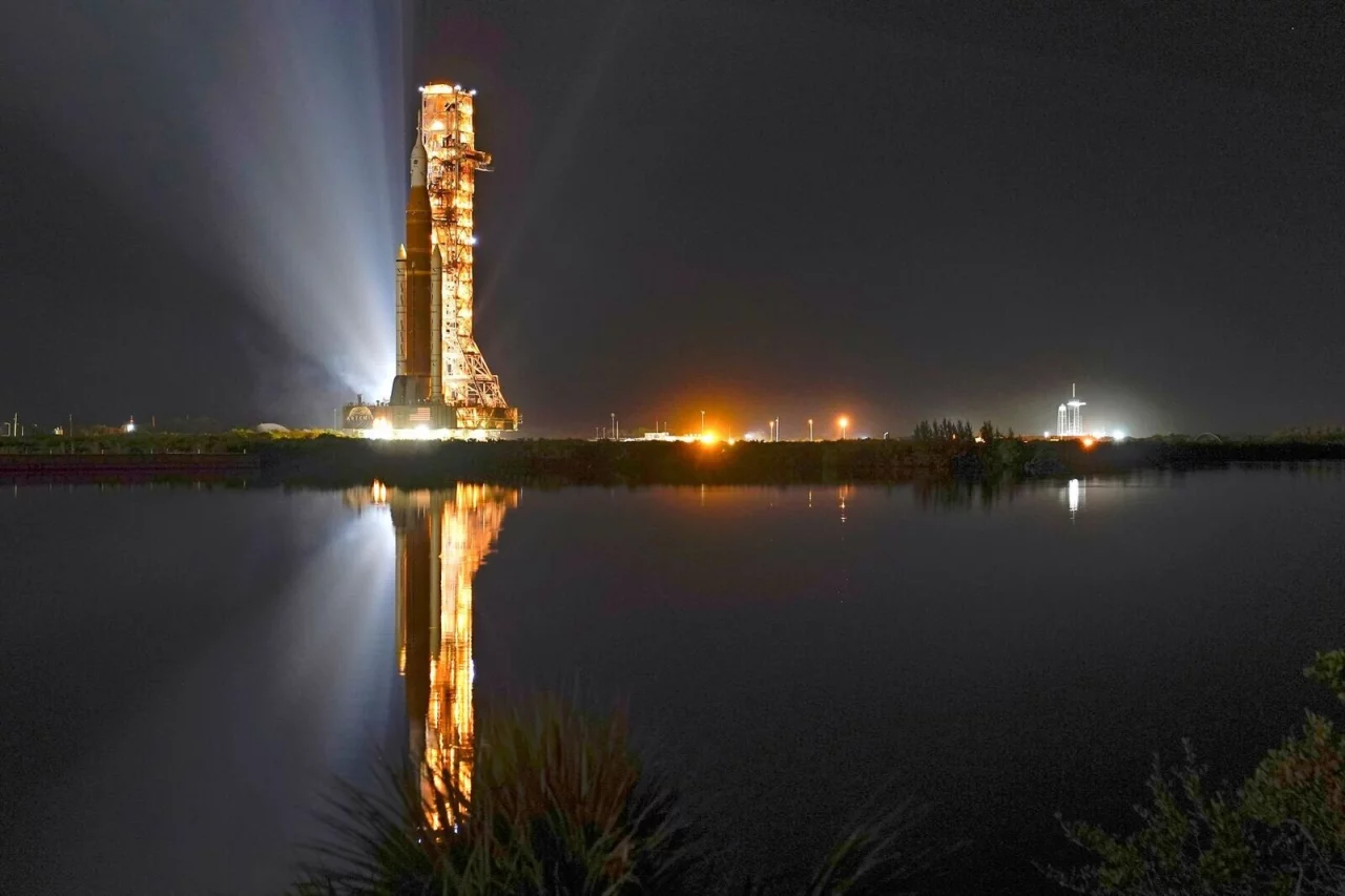 Das System - bestehend aus der Rakete «Space Launch System» und der «Orion»-Kapsel - wurde am Montag im US-Bundesstaat Florida auf einer Art Transportwagen aus der Werkshalle herausgefahren und in einer rund achtstündigen Aktion langsam die rund sechs Kilometer bis zum Startplatz gebracht.