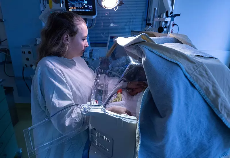 Vor allem die Körpertemperatur wird genau überwacht. «Unser größter Feind ist das Auskühlen», sagt Oberarzt Zweyrohn. Wärmestrahler, Mützchen und wenn nötig Plastikfolie halten das Neugeborene warm. Die häufigste Komplikation bei Frühchen ist, «dass sie aufhören zu atmen, um Energie zu sparen», sagt Zweyrohn.
