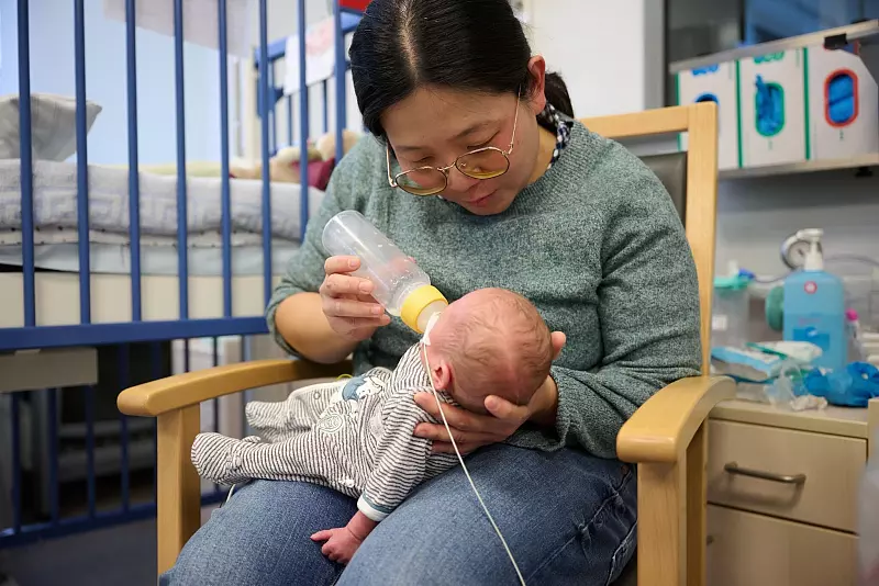Die Dortmunder Kinderklinik hat vor zehn Jahren - als erste in Nordrhein-Westfalen - eine Humanmilchbank aufgebaut, und viele Säuglinge profitieren seitdem davon. So auch Jonathan, der nach drei Monaten nun 2.160 Gramm auf die Waage bringt. Der Kleine saugt inzwischen schon tapfer selbst am Fläschchen. Eine Mini-Magensonde durch seine Nase bleibt aber zur Sicherheit noch erhalten.