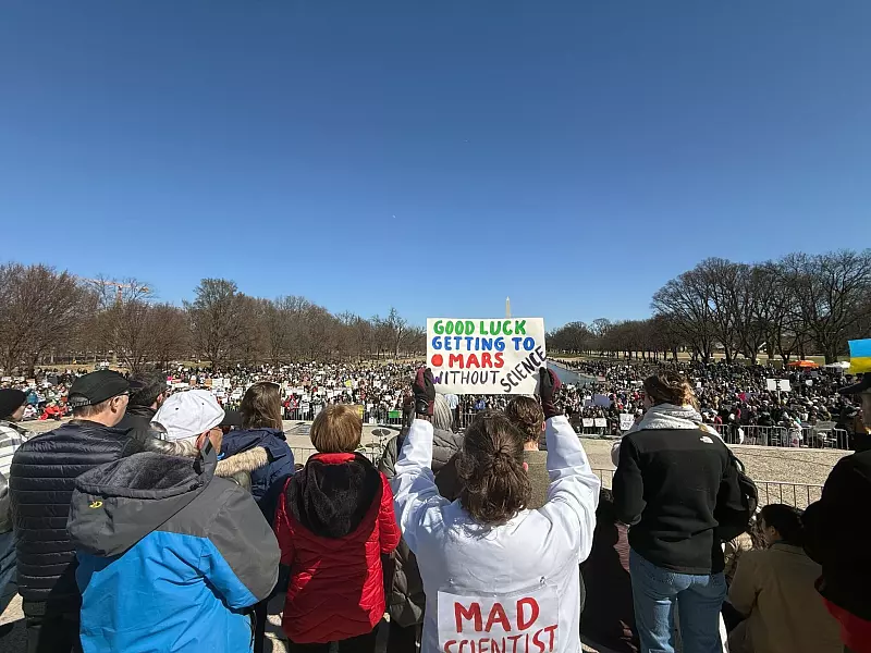 Bei der Kundgebung in Washington hielt eine Nasa-Mitarbeiterin ein Schild hoch mit der Aufschrift «Viel Glück dabei, auf den Mars zu kommen ohne Wissenschaft». Sie spielte damit auf die Doppelrolle des Tech-Milliardärs Elon Musk an, der im Auftrag von US-Präsident Donald Trump massenweise Leute in Behörden und Ministerien entlässt und zugleich mit seinem Raumfahrtunternehmen SpaceX zum Mars strebt.