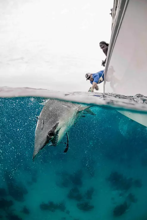 «Das Verständnis der Bewegungsmuster von Hammerhaien ist wichtig, um die Schutzmaßnahmen zu verbessern», so Guttridge. Sein Team fing und vermaß vor der Insel Andros 22 Große Hammerhaie, zudem wurden Gewebeproben genommen. Die Analyse ergab, dass Barrakudas und Stachelrochen insgesamt etwa zwei Drittel der Nahrung der als Einzelgänger lebenden Tiere ausmachten, kleinere Haie den Rest.