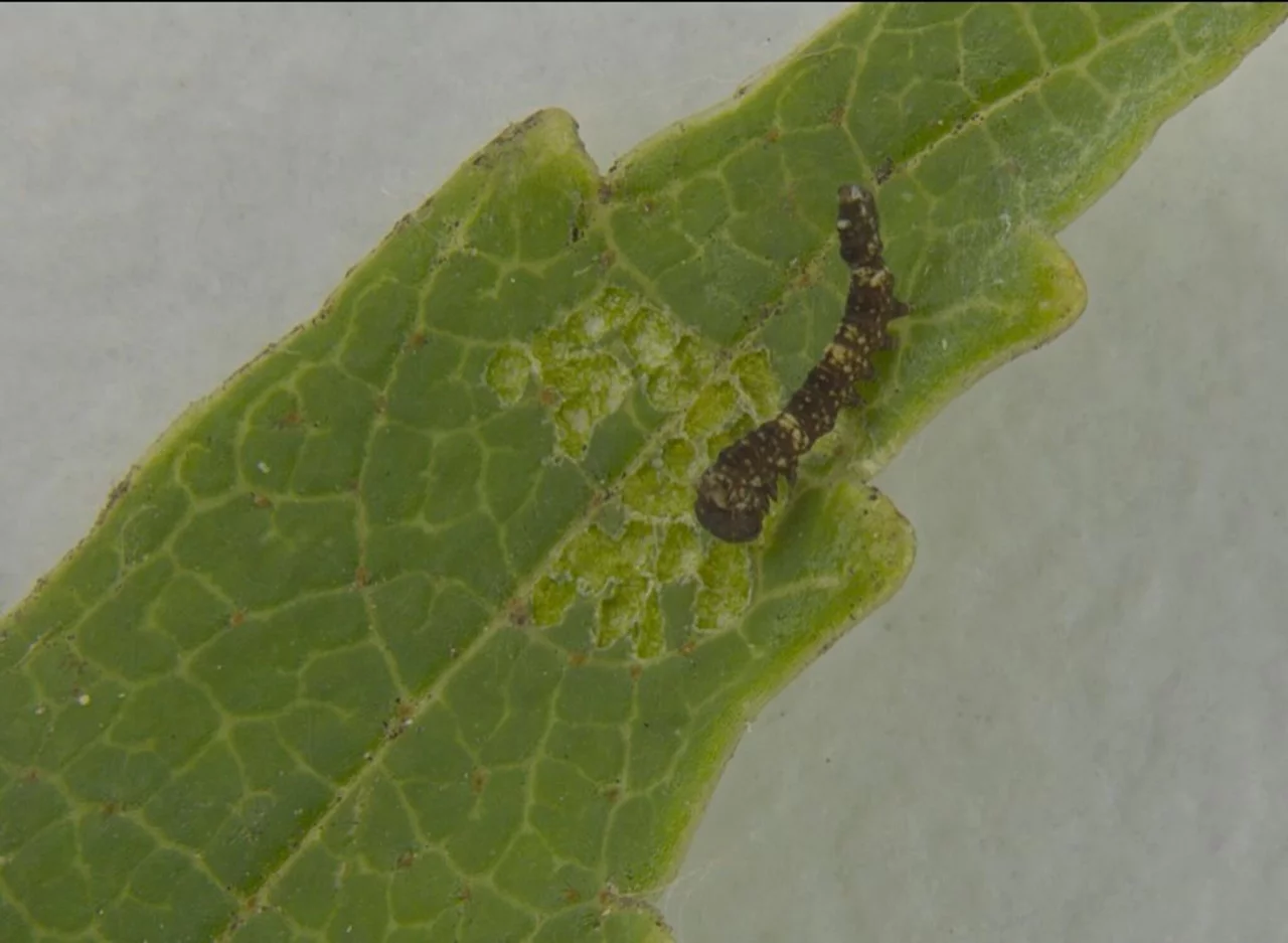 Der nordamerikanische Nachtfalter Falcaria bilineata legt seine Eier auf Zweigen und Blättern von Birken ab. Schlüpfen die nur einen halben bis zwei Millimeter langen Raupen, krabbeln sie auf die Spitzen nahegelegener Blätter. In der Vergangenheit war beobachtet worden, dass die Minis dort regelmäßig vibrieren - vermutet wurde, dass damit Rivalen verschreckt werden sollen. Sehen können die Minis nämlich nicht sonderlich gut, wie erläutert wird.