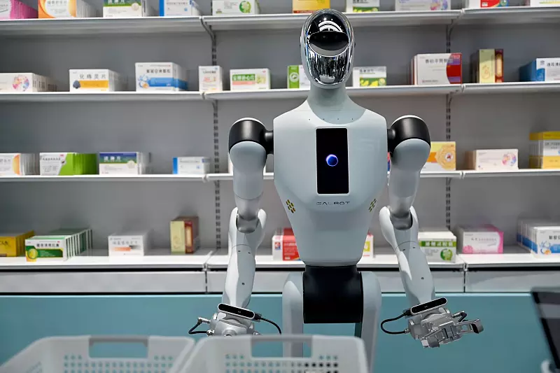 Während Roboterhunde Kunststückchen aufführen und Pfote geben, steht «GalBot» vor einem Regal mit verschiedenen Medikamenten. Per Knopfdruck können Besucher ein Produkt auswählen, das der in Peking entwickelte Roboter mit seinen langen Armen aus dem Regal nimmt und in einen Korb legt. So könne eine Apotheke 24 Stunden in Betrieb sein, sagt eine Frau, die eine Besuchergruppe durch die Ausstellung führt.