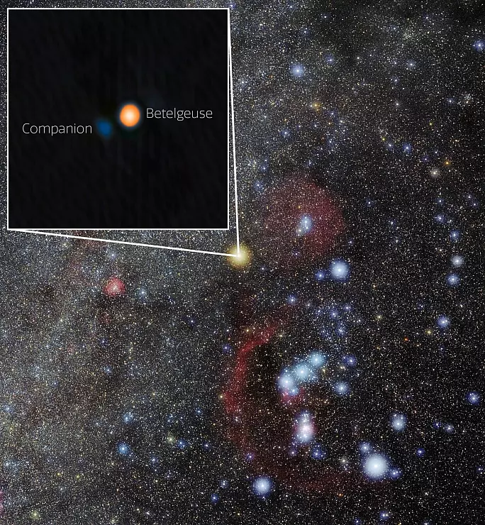 Der Studie zufolge leuchtet der Sternbegleiter um sechs Größenordnungen schwächer als Beteigeuze und hat eine geschätzte Masse von etwa 1,6 Sonnenmassen.