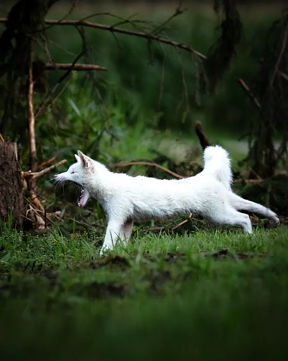 Das kuriose Tier sei von Fotograf Dominik Reigl gefunden worden, teilte der Verband mit. Vor einiger Zeit sei der Naturfotograf mal wieder auf Erkundungstour gewesen - war schon kurz davor, unverrichteter Dinge abzubrechen. Dann habe er das Tier in der Dämmerung zum ersten Mal gesehen, berichtet der Fotograf: «Einen kleinen, vollständig weißen Fuchs mit blauen Augen».