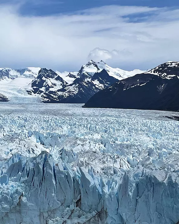 Im Gegensatz zu anderen Gletschern in Patagonien zog sich der Perito Moreno lange Zeit nicht nennenswert zurück. Berühmt ist der 250 Quadratkilometer große Gletscher für ein einzigartiges Naturschauspiel: Immer wieder sperrt die Gletscherzunge den Lago Argentino ab und staut so Teile des riesigen Sees auf. Wird der Druck zu groß, bekommt das Eis Risse und die Gletscherfront stürzt ein.