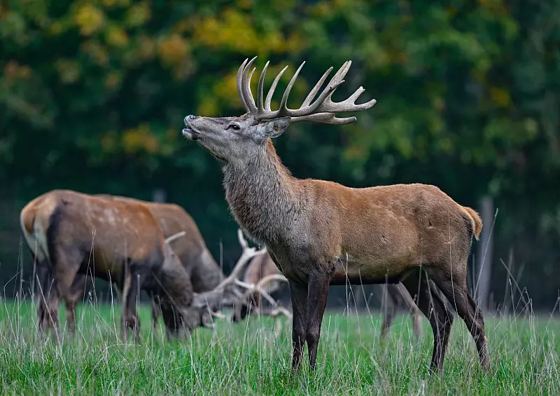 Keiner ist größer als der Rothirsch - zumindest unter den regelmäßig in Deutschland vorkommenden Hirscharten. Wenn der Mensch die Tiere nicht in die Wälder verdrängt hätte, würde man den Hirsch mit seinem prächtigen Geweih viel öfter auf Lichtungen sehen. Bei der Brunft im September kann man ihn auch hören. Dann röhren und kämpfen die Männchen um die Weibchen.