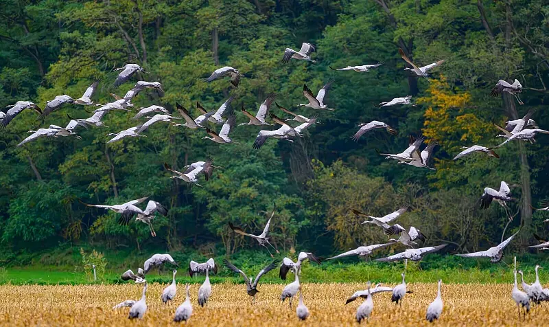 «Als Massenzugtage gibt es wirklich die Tage, wenn Rückenwind für die Kraniche vorherrscht, gepaart mit einem Hochdruckgebiet», erklärte er. Das sei dann unter anderem ein Zeichen für die Kraniche, weiterzuziehen. Ein weiterer Faktor sei die Verfügbarkeit von Nahrung in den Rastregionen, die jedes Jahr anders aussehe.
