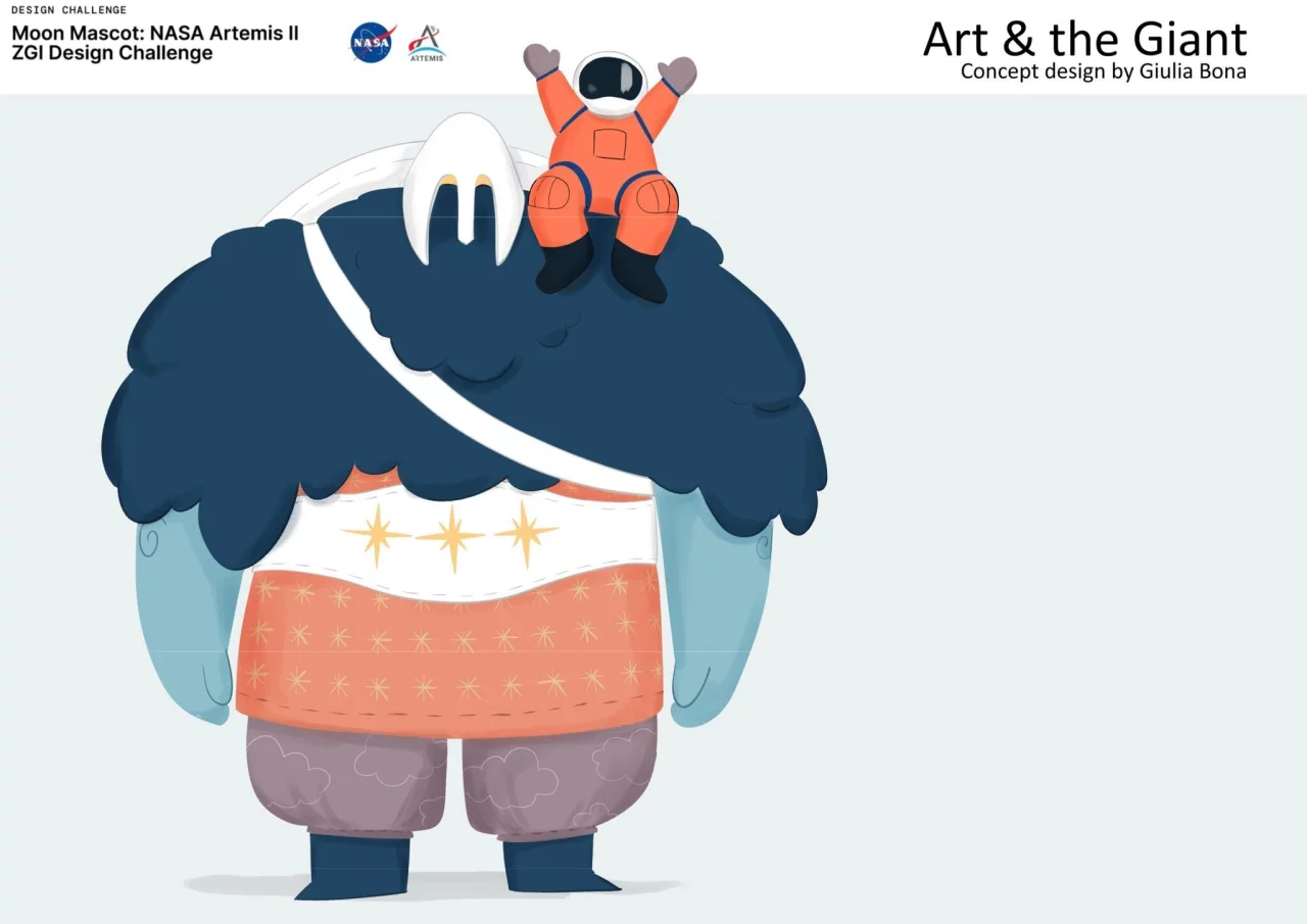 Sie habe im Internet von der Aktion gelesen und spontan beschlossen mitzumachen - unter anderem, weil sie schon seit ihrer Kindheit vom Weltraum fasziniert sei, sagte die in Berlin als freiberufliche Wissenschaftskommunikatorin arbeitende Bona der Deutschen Presse-Agentur. «Ich hätte nicht wirklich gedacht, dass ich so weit kommen könnte.» Nach «Wochen voll schlechter Ideen» sei sie auf den eingereichten Entwurf gekommen: einen Astronauten, der auf der Schulter eines Giganten namens Orion sitzt - so heißt auch die Raumkapsel der Nasa und in der Mythologie ein Partner der Göttin Artemis, nach der die Mond-Mission benannt ist.